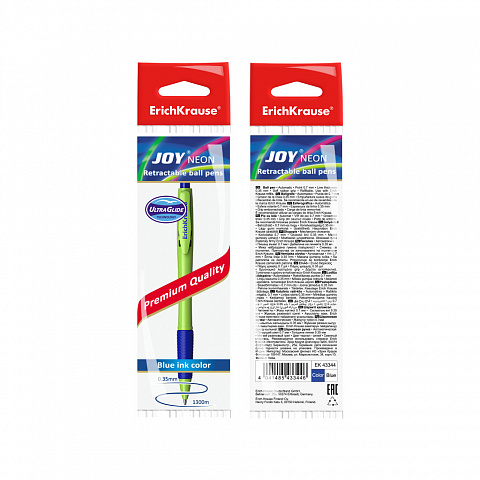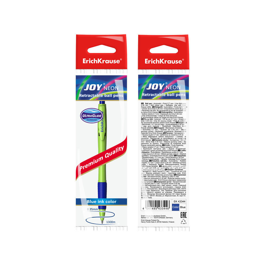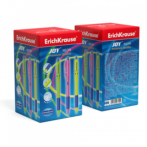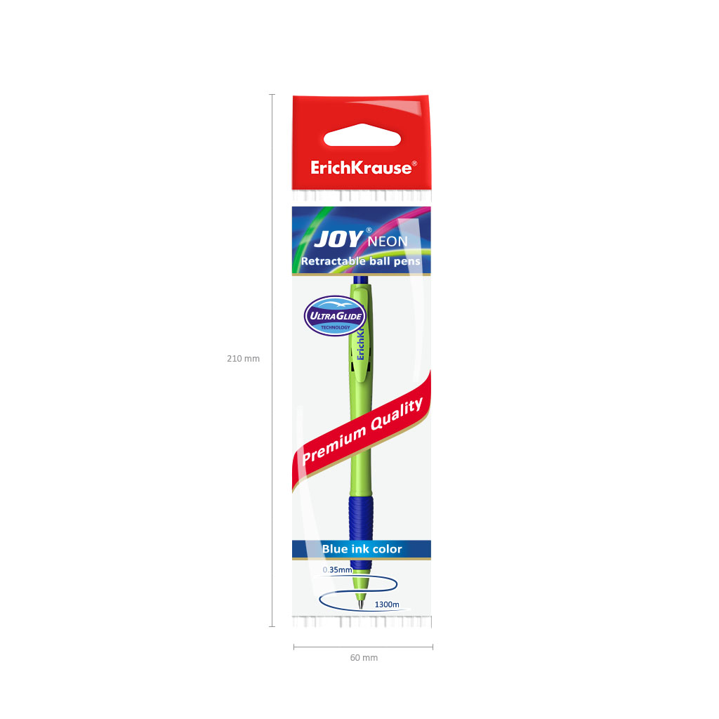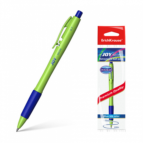 Retractable ballpoint pen ErichKrause® JOY® Neon, Ultra Glide Technology, ink color: blue (polybag 1 pc.) |