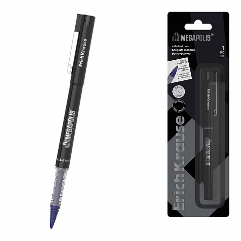 Rollerball pen ErichKrause MEGAPOLIS® Stick 1.0, ink color: blue (1 pc in blister) |