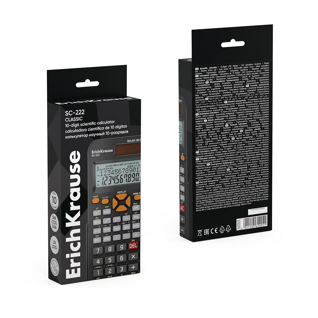Scientific electronic calculator 10-Digit ErichKrause SC-222 Classic, 240 functions, black (box 1 pc) |