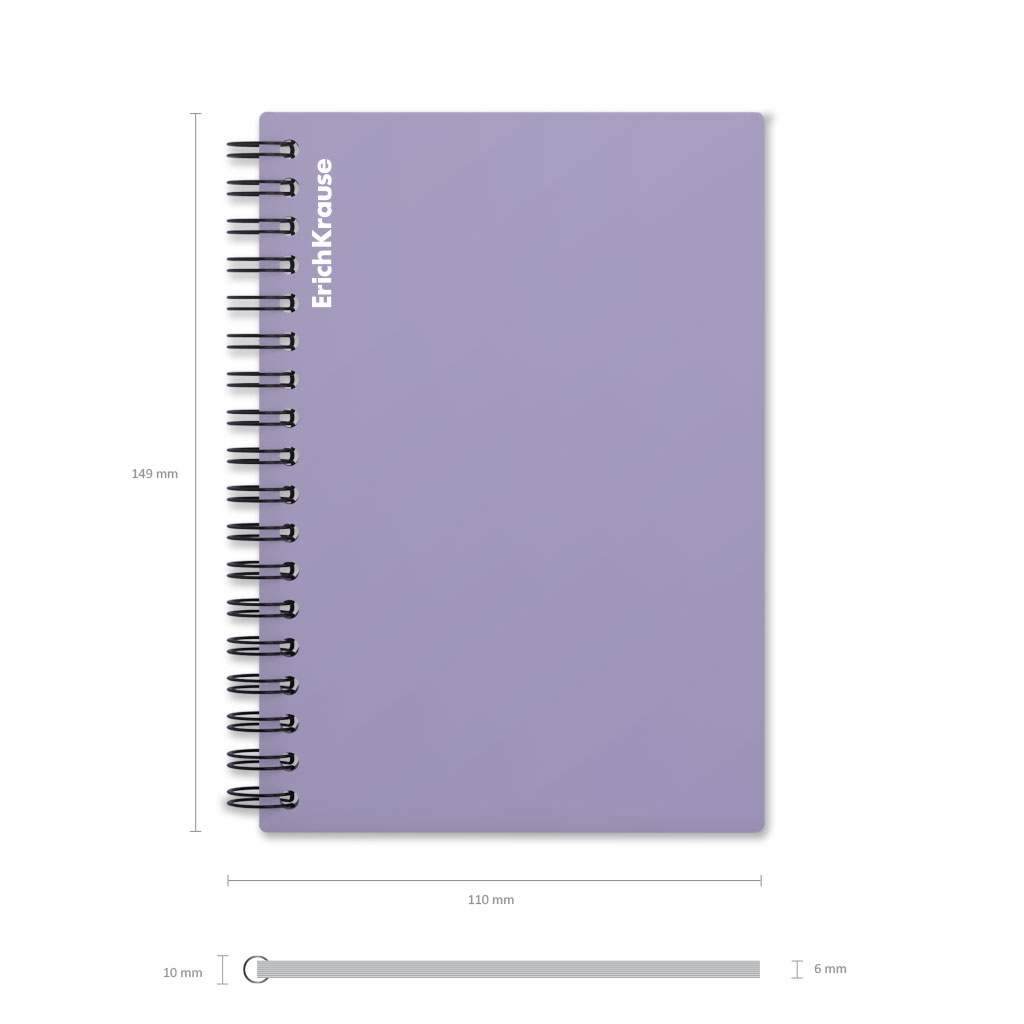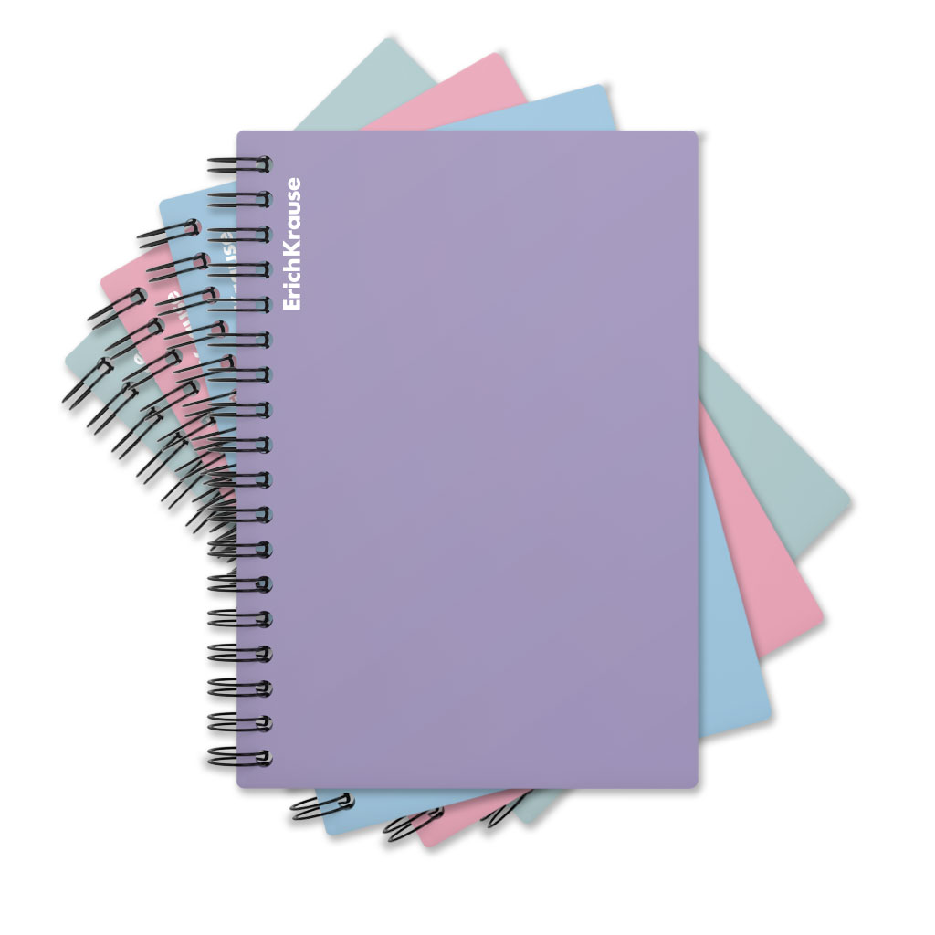 Wirebound notebook ErichKrause, Pastel, assorted, А6, 80 sheets, squared, plastic cover |