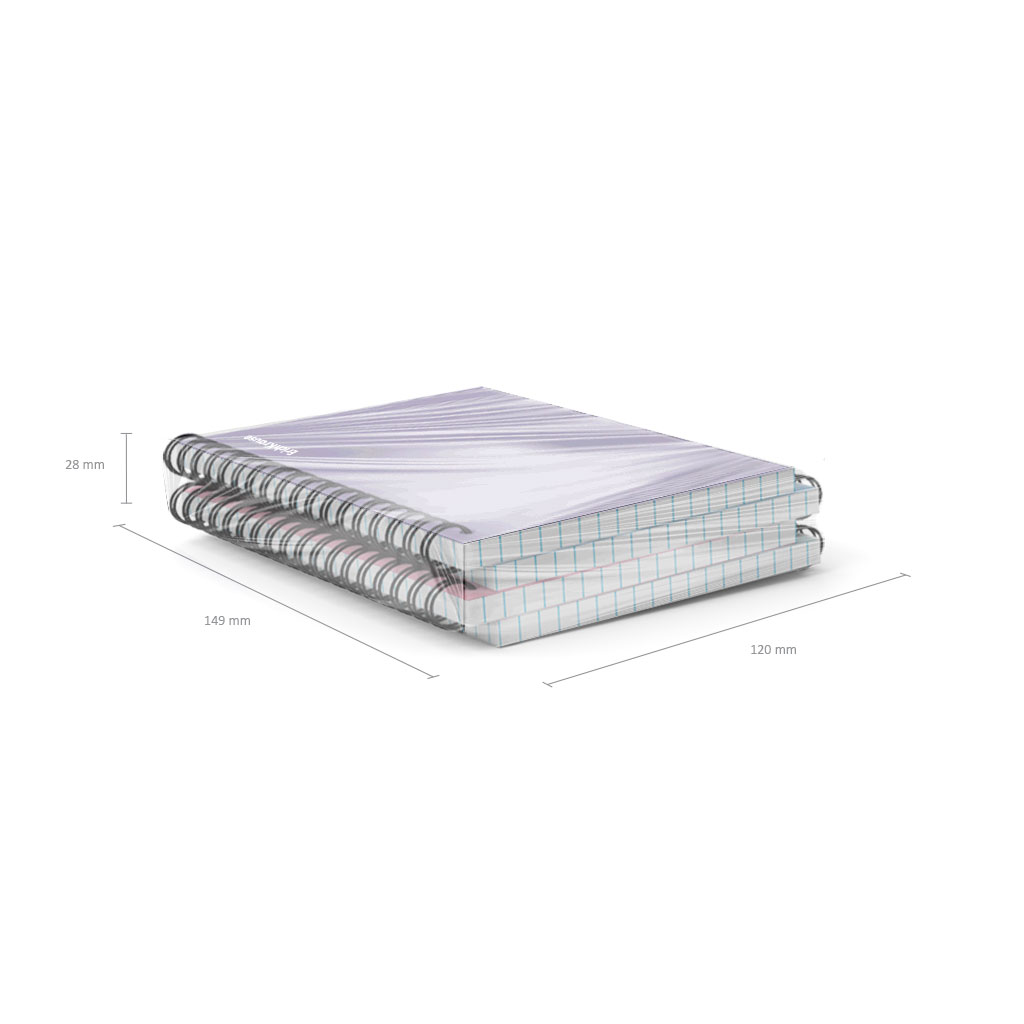 Notebook with size A6 (102x146 mm). Strong and durable matt polypropylene cover with texture «sand». 80 sheets per pad of quality paper 60 gsm. Paper ruling — dark blue squared. Cover has rounded corners for comfort and safety. Binding type — wirebound. 5… |