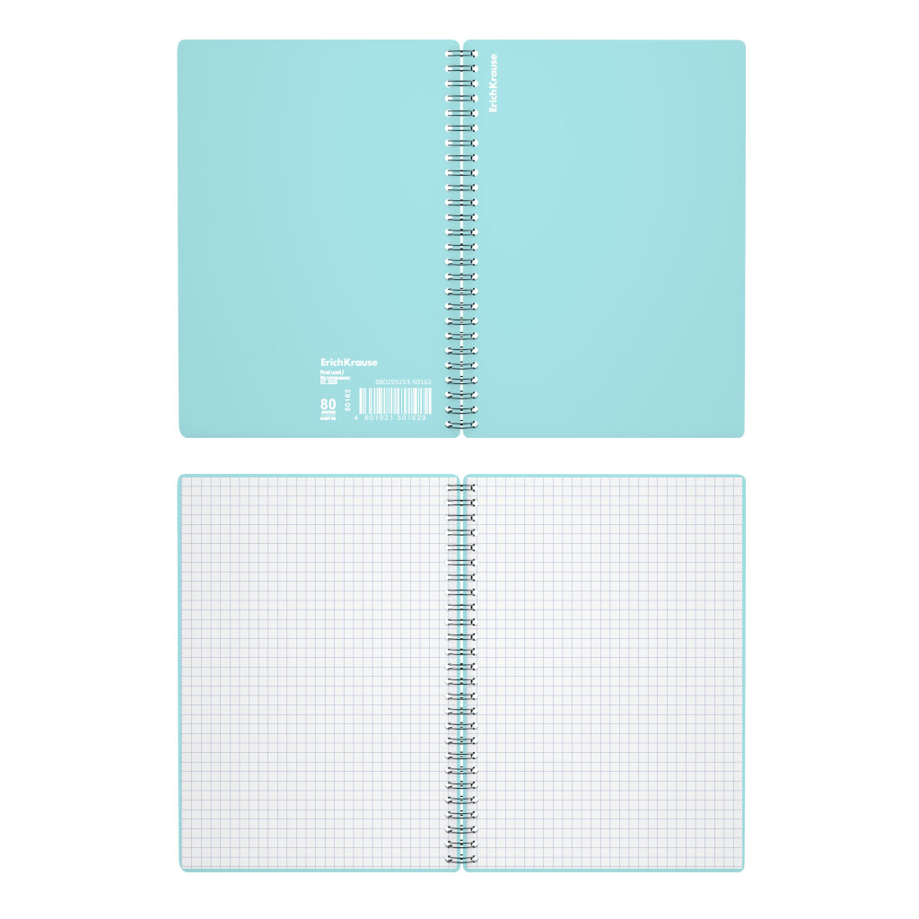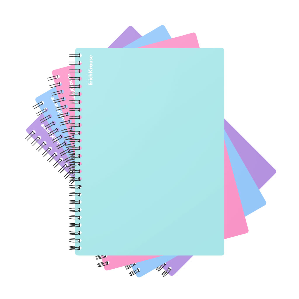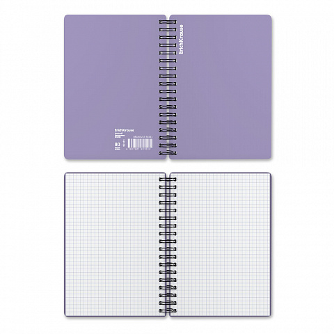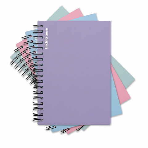 Wirebound notebook ErichKrause, Pastel, assorted, А5, 80 sheets, squared, plastic cover |