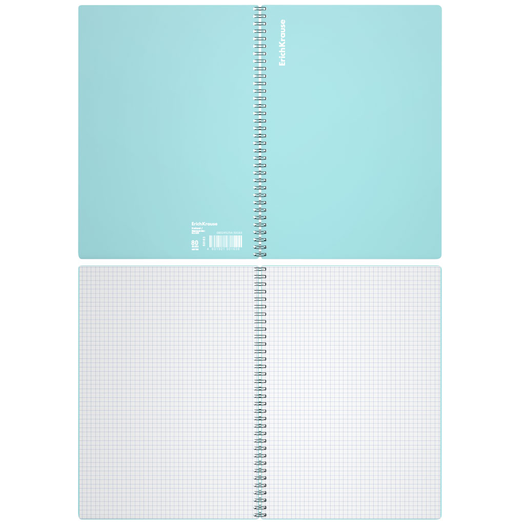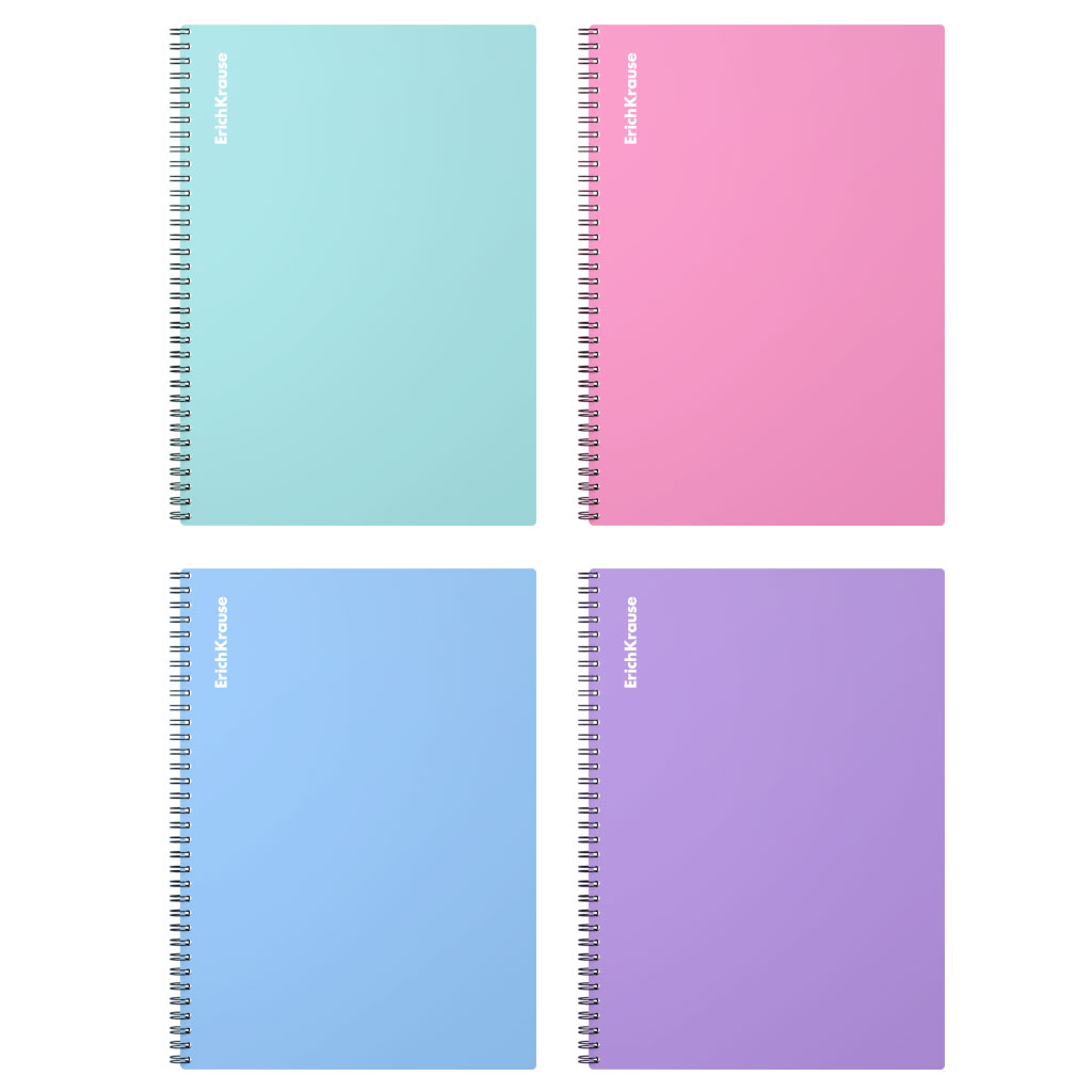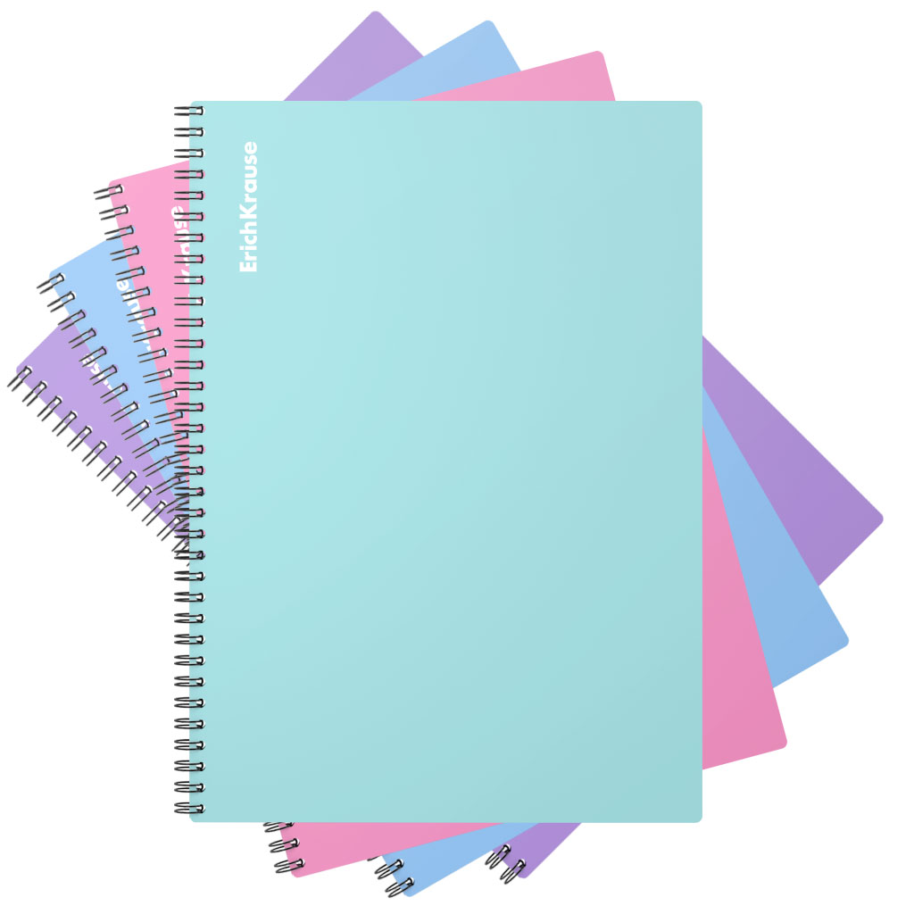 Wirebound notebook ErichKrause, Pastel, assorted, А4, 80 sheets, squared, plastic cover |