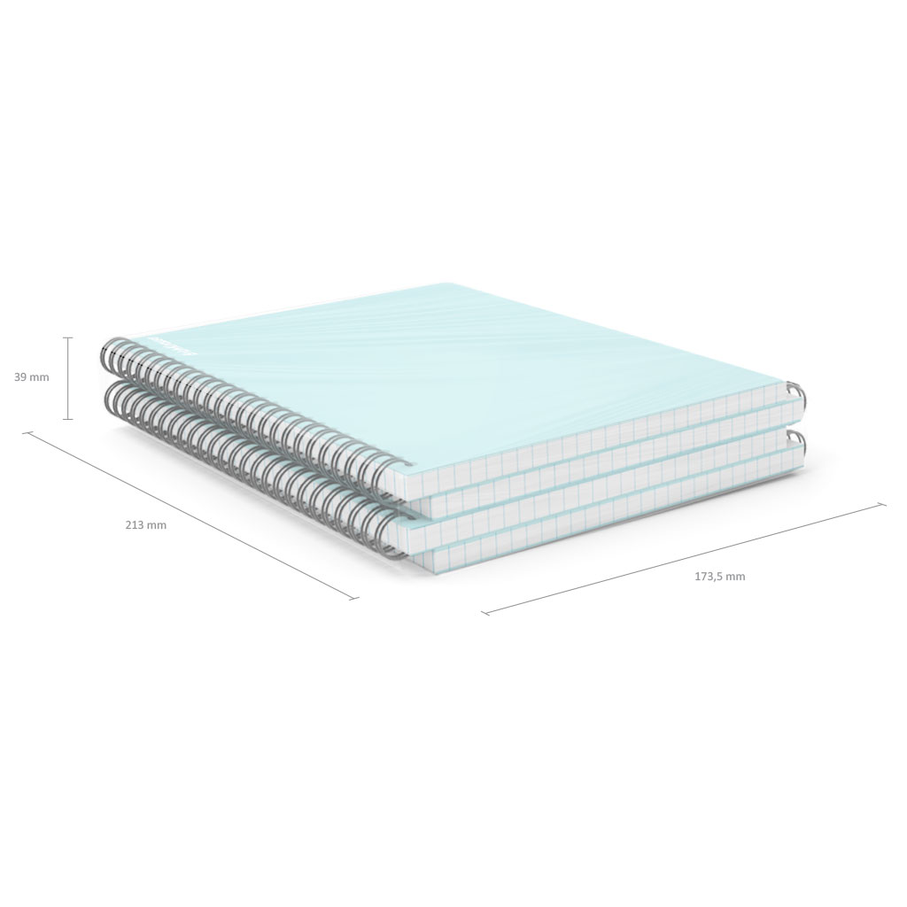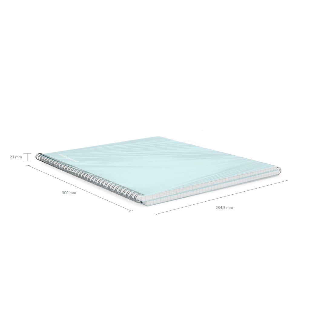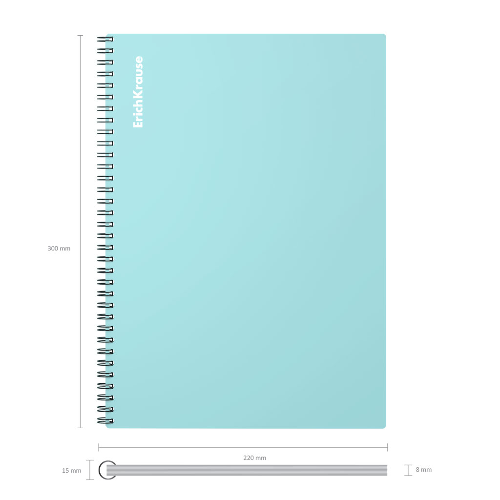 Notebook with size A4 (210x297 mm). Strong and durable matt polypropylene cover with texture «sand». 80 sheets per pad of quality paper 60 gsm. Paper ruling — dark blue squared. Cover has rounded corners for comfort and safety. Binding type — wirebound. 2… |