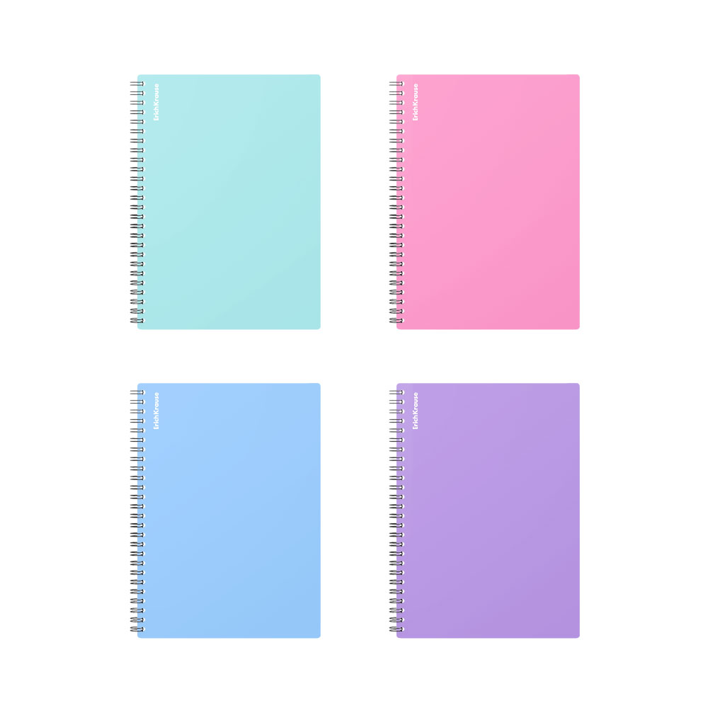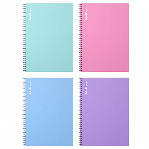 Wirebound notebook ErichKrause, Pastel, assorted, А4, 80 sheets, squared, plastic cover