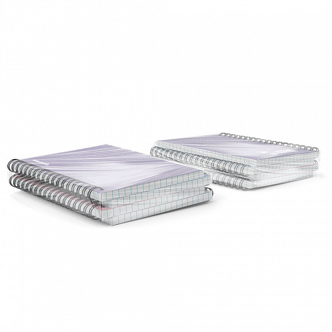 Notebook with size A4 (210x297 mm). Strong and durable matt polypropylene cover with texture «sand». 80 sheets per pad of quality paper 60 gsm. Paper ruling — dark blue squared. Cover has rounded corners for comfort and safety. Binding type — wirebound. 2 pieces of one color in shrink wrap. Available in assorted colors with no choice. |