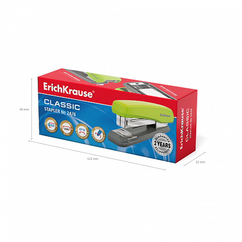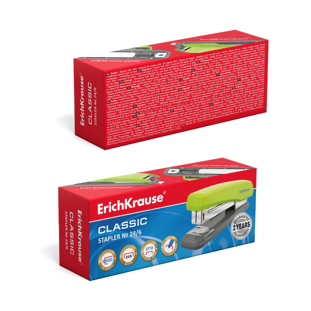 Stapler №24/6 ErichKrause Classic, up to 25 sheets, grey-green (box 1 pc) |