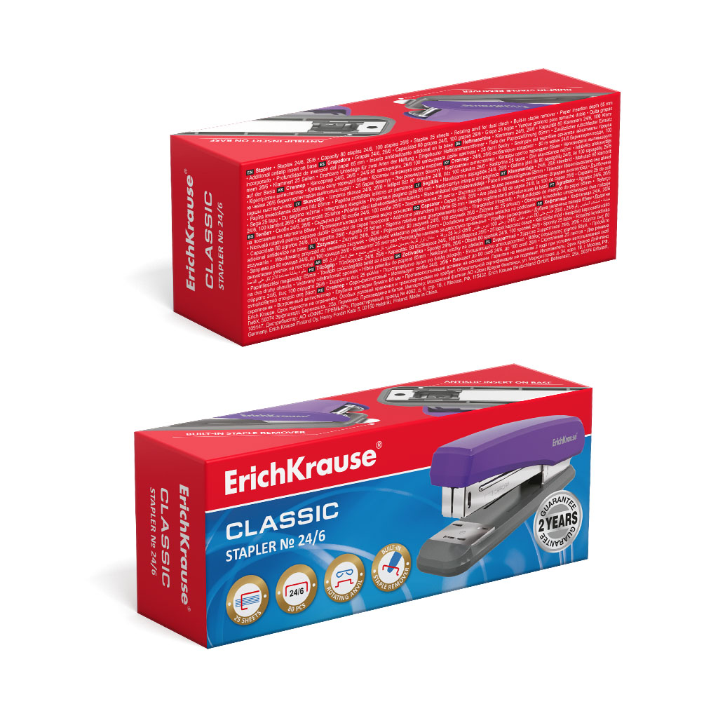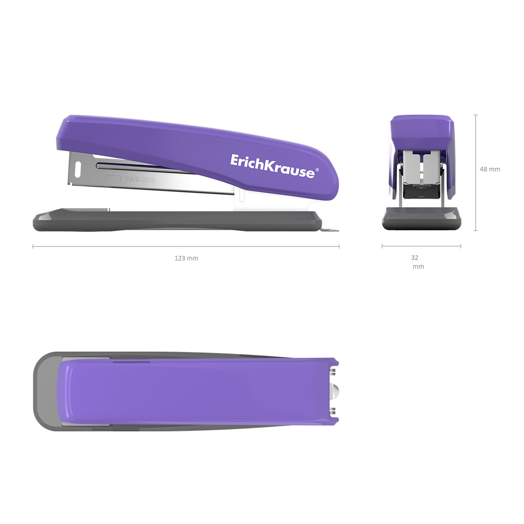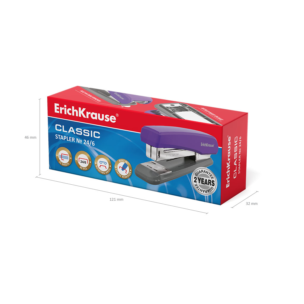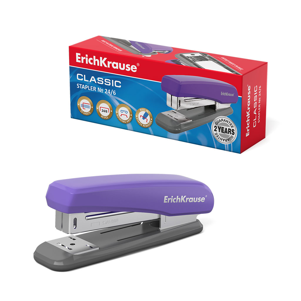 Stapler №24/6 ErichKrause Classic, up to 25 sheets, grey-violet (box 1 pc)