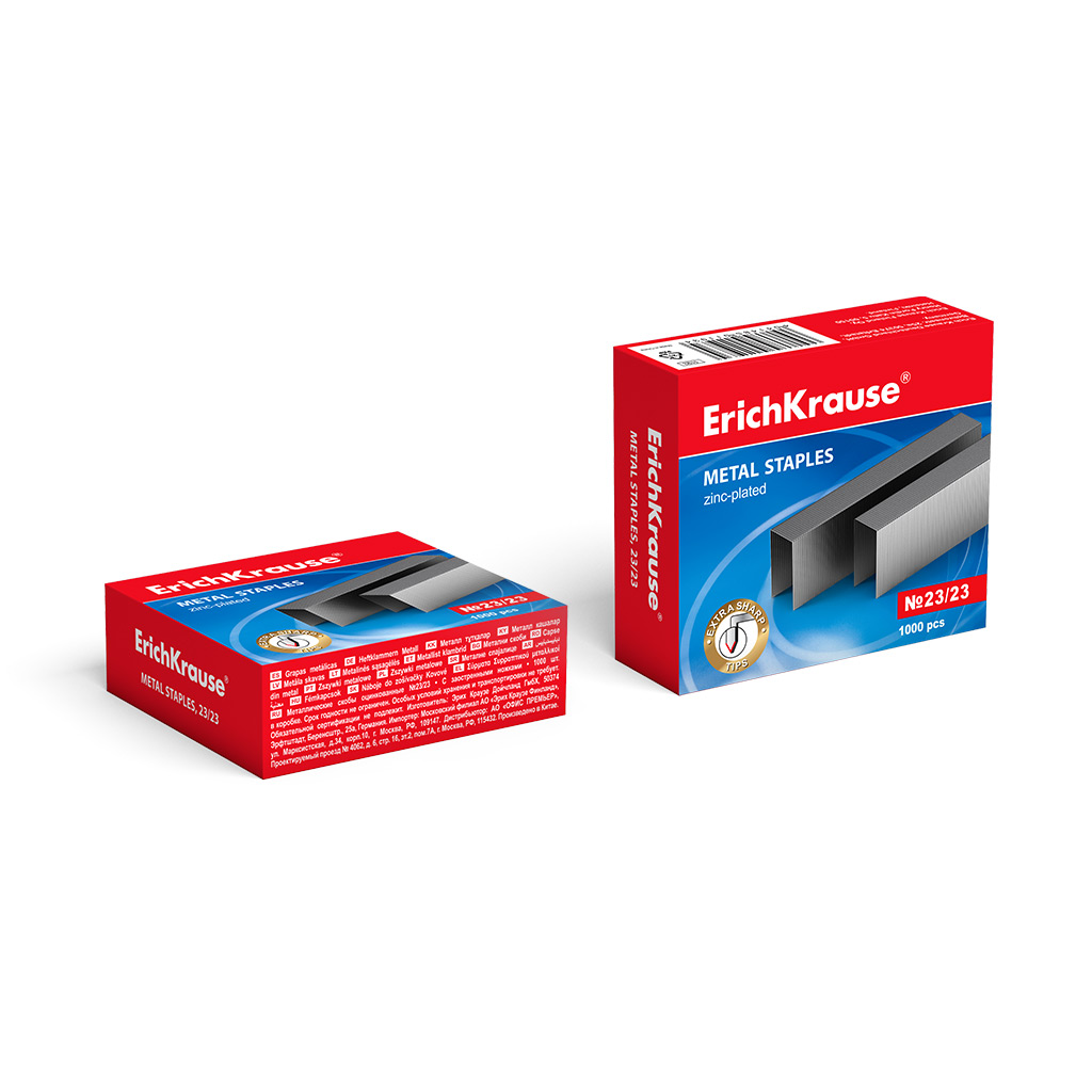 Zinc plated staples of high quality steel wire with improved strength characteristics. Sharp angle of each staple easily provides stapling of large volume of documents. Barrels are resistant to easily segmentation due to quality gluing. Corrosion-resistant. |