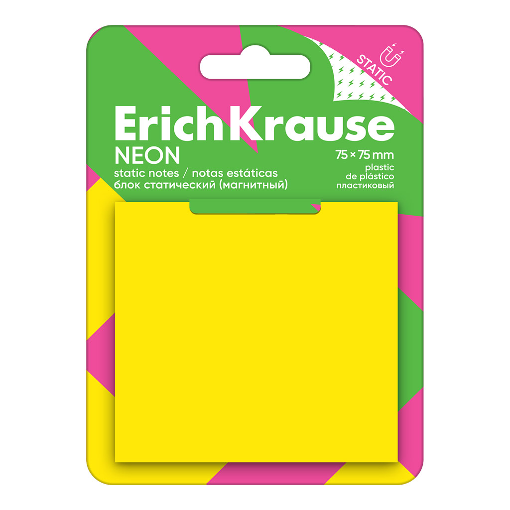 Static notes ErichKrause Neon, 75х75х mm, 50 sheets, yellow |