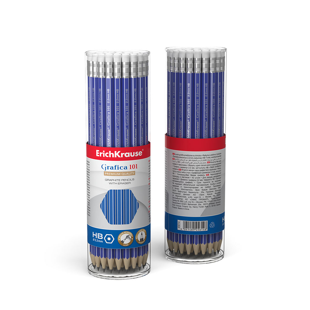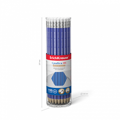 Graphite hexagonal pencil with an eraser ErichKrause® Grafica 101 HB (in tube 42 pcs.) |