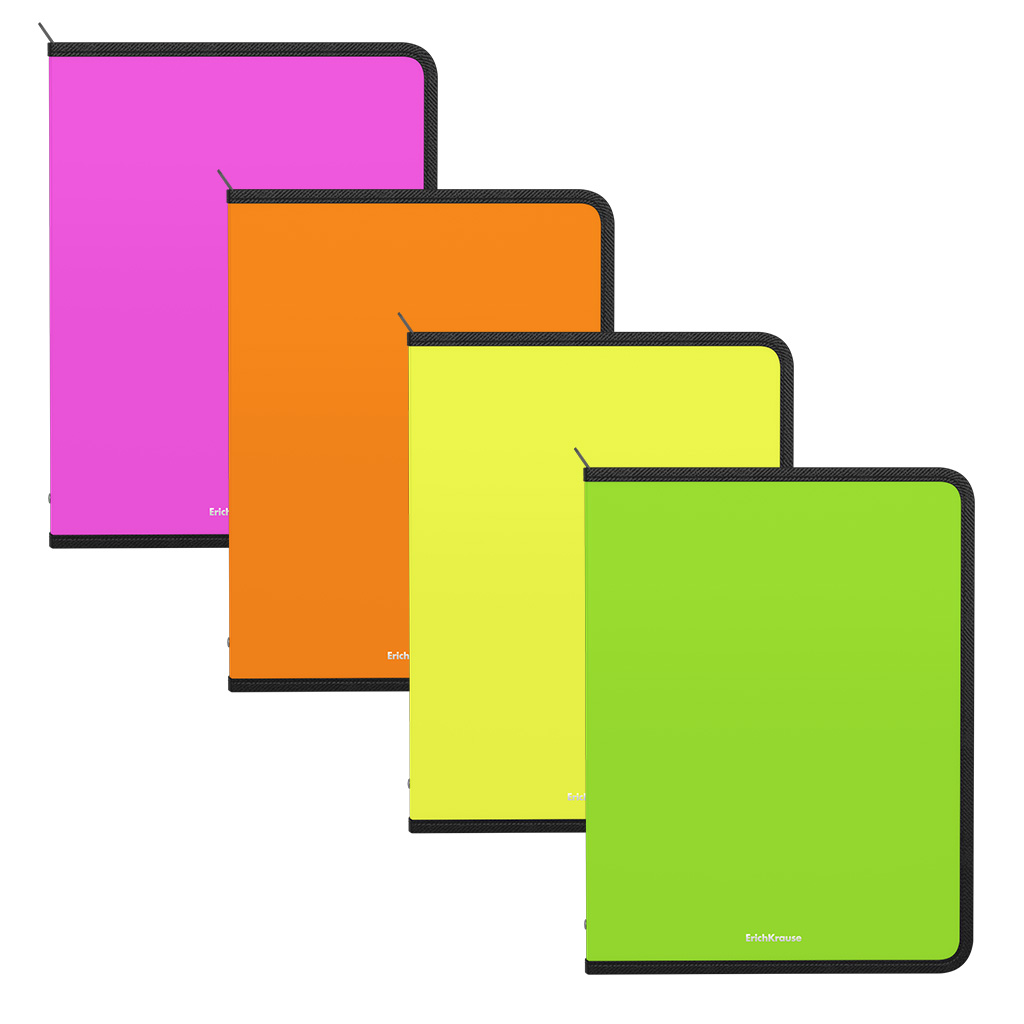Zip folder for notebooks ErichKrause® Diagonal Neon, A4, assorted colors (4 pcs in a bag) |