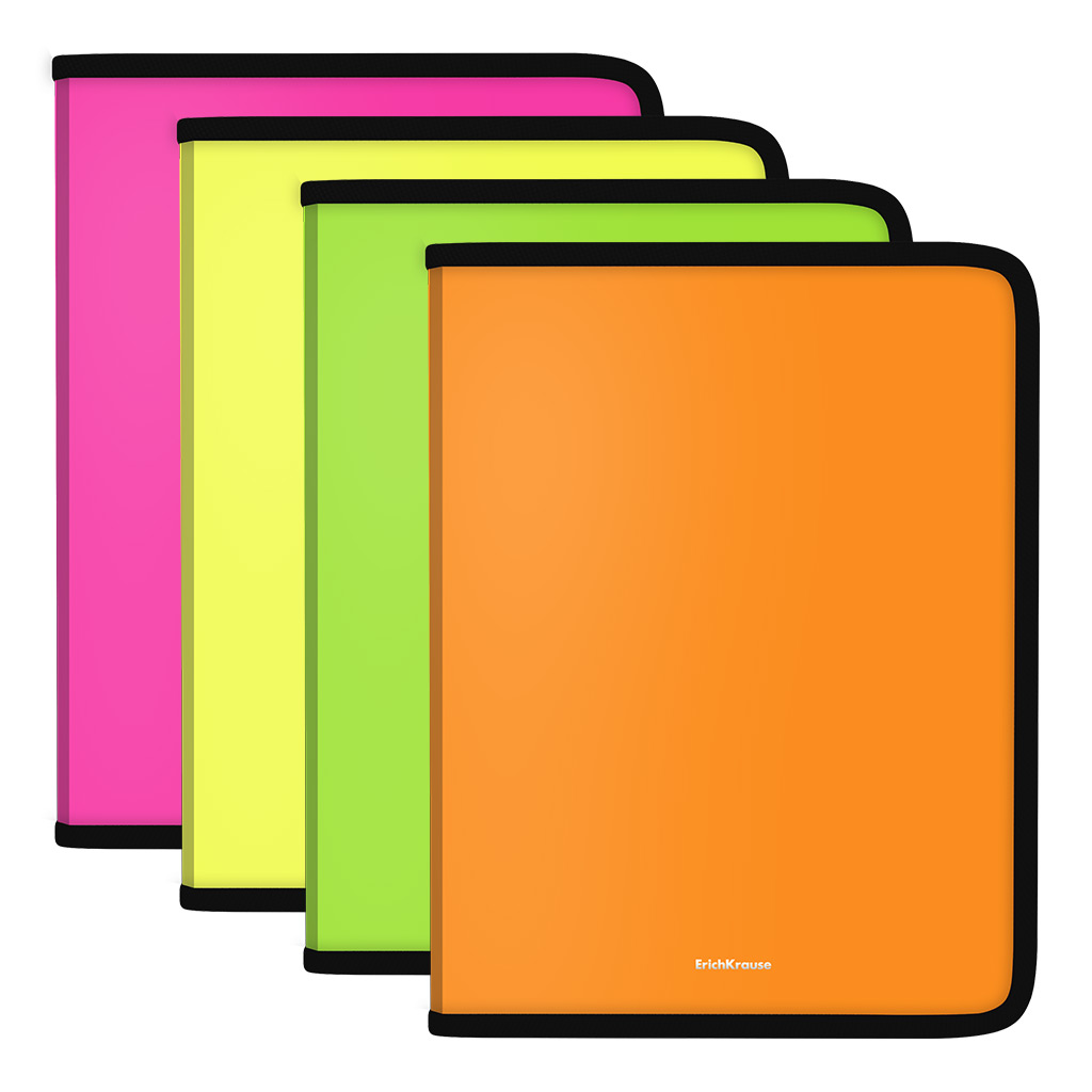 Zip folder for notebooks ErichKrause® Matt Neon, А4, assorted colors (4 pcs in a bag) |