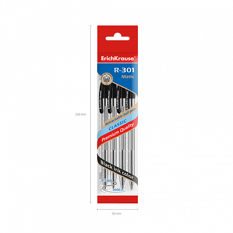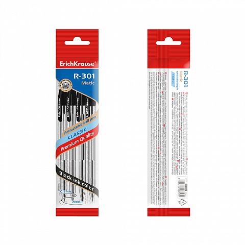 Bolígrafo automático ErichKrause® R-301 Classic Matic 1.0, tinta color: negro (bolsa 4 uds.) |