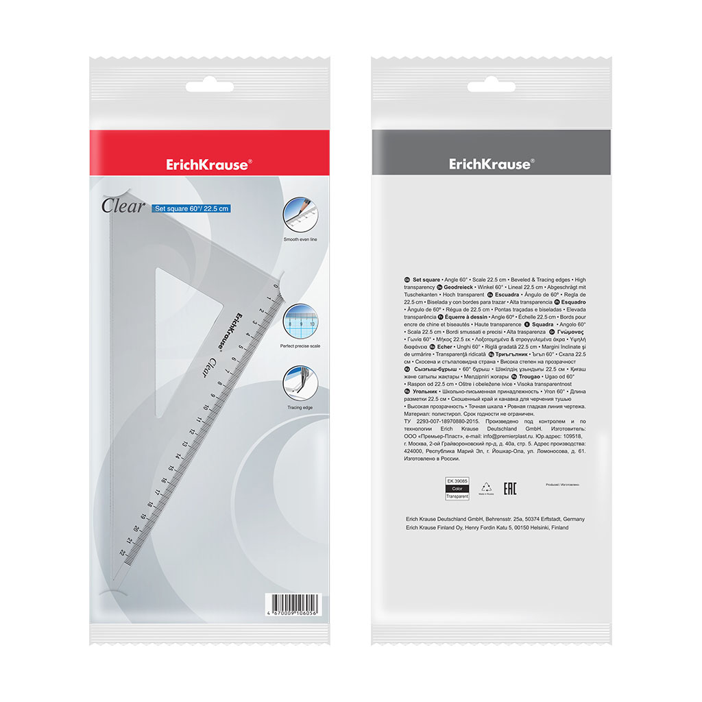Cartabón Clear, 60°, 22.5cm