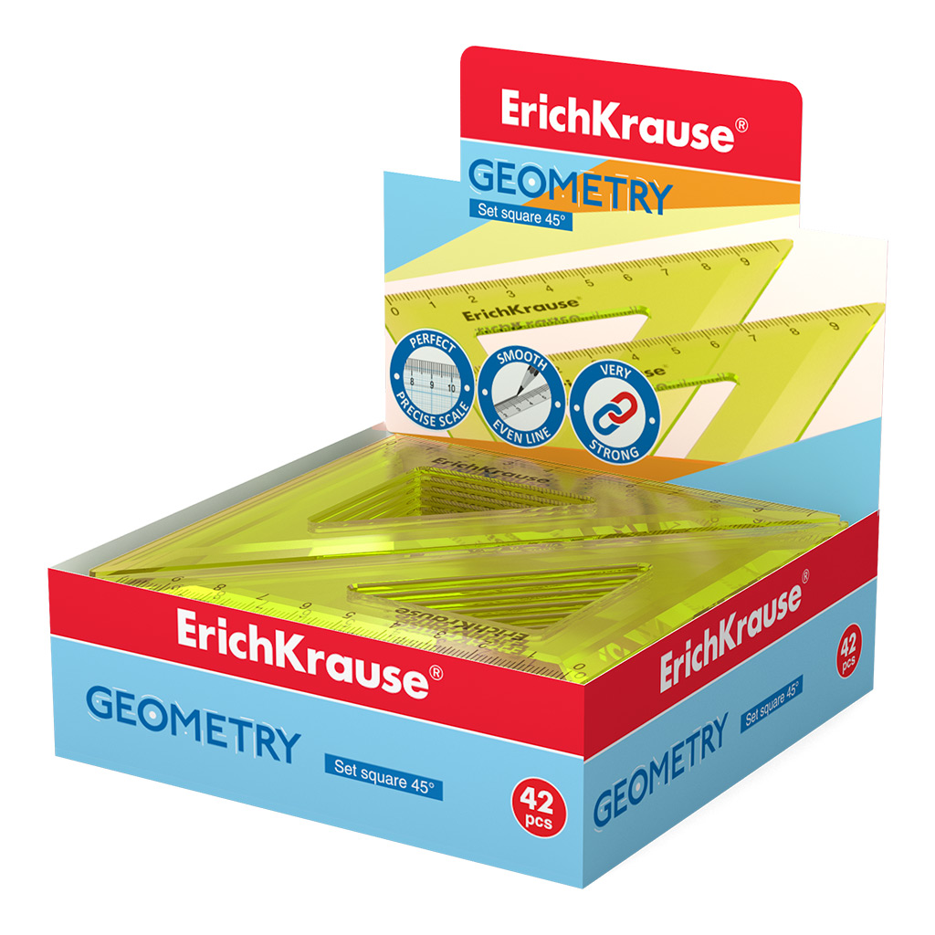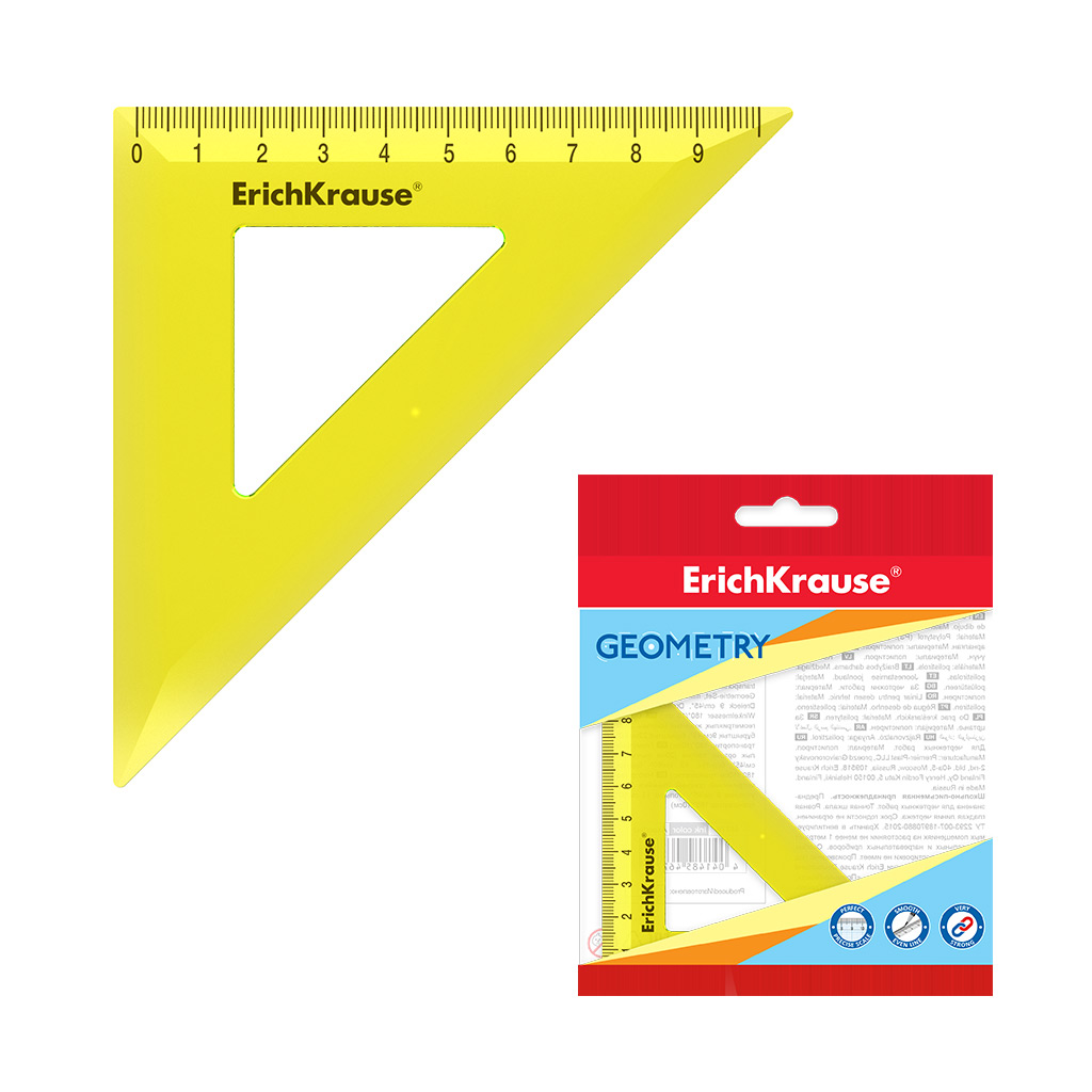 Escuadra ErichKrause Neon, 45°/9cm, amarillo (caja de presentación 42 uds.) |