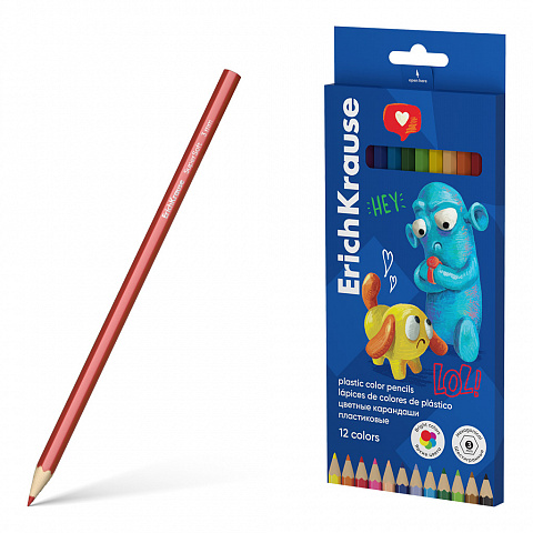 Lápices de colores hexagonales de plástico ErichKrause Jolly Friends 12 colores, mina de 3 mm (en caja de cartón con colgador 12 unidades)