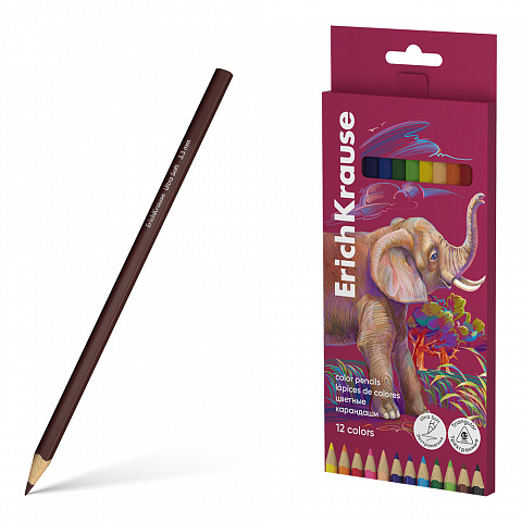 Lápices de colores triangulares ErichKrause Safari 12 colores, mina de 3,3 mm (en caja de cartón con colgador 12 piezas) |