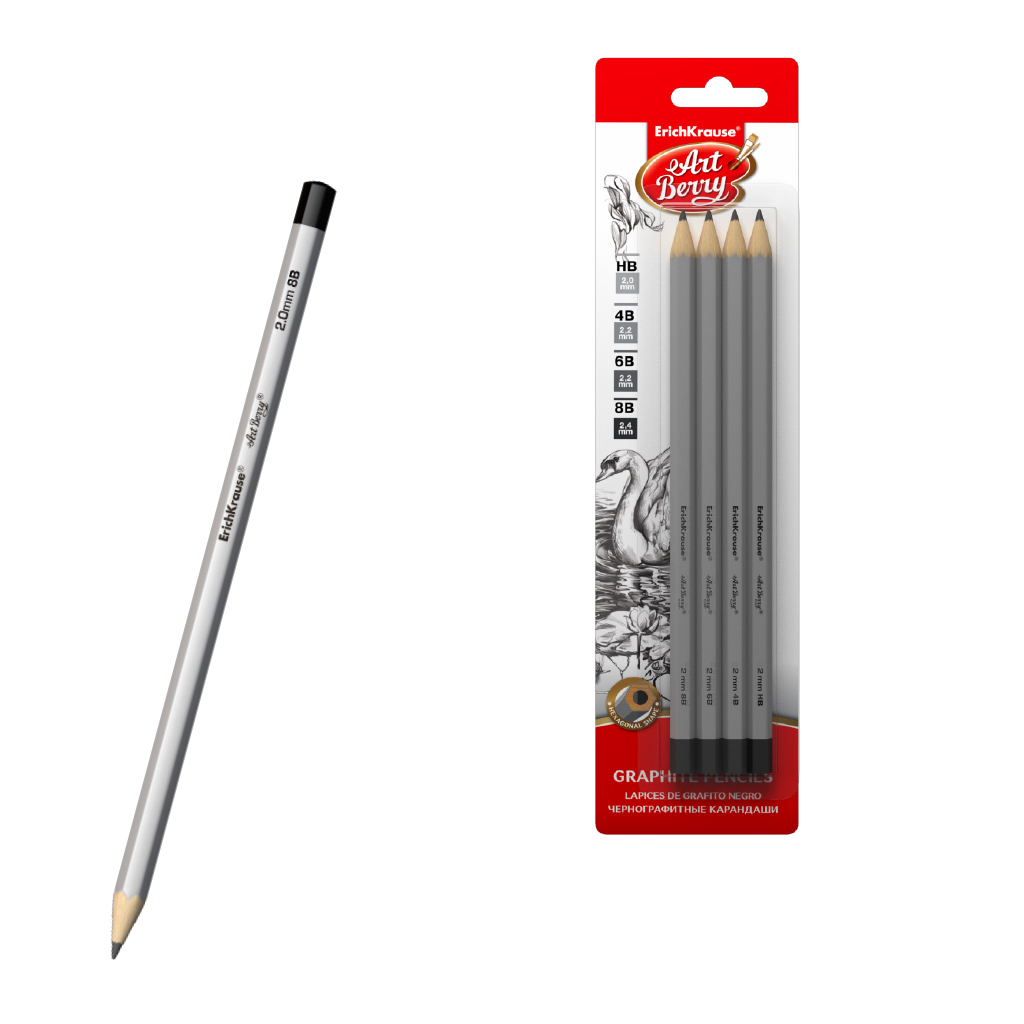 Lápiz de grafito hexagonal ArtBerry® HB, 4B, 6B, 8B (en caja 4 uds.) |