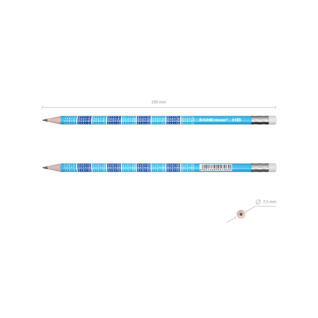 Lápiz de grafito de sección redonda con goma de borrar ErichKrause® 2x2 HB (en tubo 42 uds.)