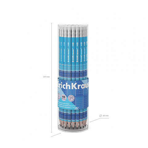 Lápiz de grafito de sección redonda con goma de borrar ErichKrause® 2x2 HB (en tubo 42 uds.) |