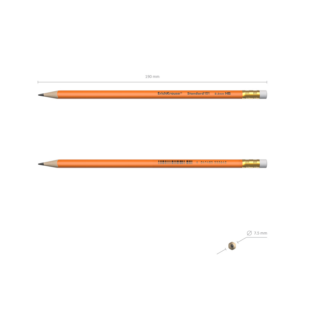 Lápiz de grafito plástico hexagonal con goma de borrar ErichKrause® Standard 101 Orange HB (caja 12 uds.)