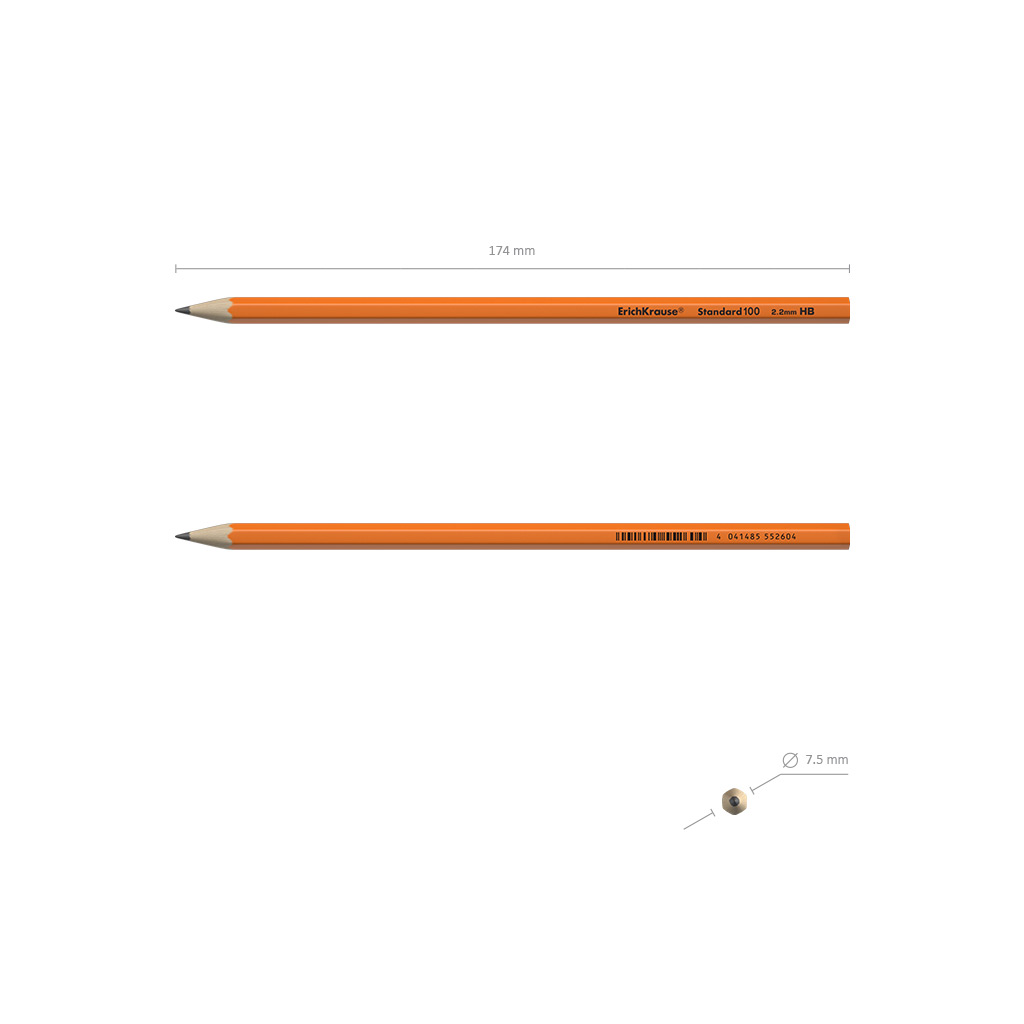 Lápiz de grafito plástico hexagonal ErichKrause® Standard 100 Orange HB (caja 12 uds.) |