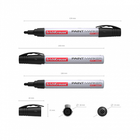 Un marcador de pintura universal esta equipado con un sistema de suministro de tinta de valvula, un cuerpo de aluminio resistente y una tapa con un clip conveniente. Marcador permanente con punta en forma de bala, adecuado para escribir y marcar en casi todas las superficies: caucho, metal, hormigon, papel, carton, vidrio, plastico, porcelana, madera, piedra artificial y natural, etc. El color de la tapa coincide con el color de la tinta. La punta en forma de bala es resistente a los danos y al desgaste. El ancho de escritura de 1.5-2.5 mm. La tinta a base de alcohol es resistente al agua, la luz y los rayos ultravioleta, se seca rapidamente despues de la aplicacion, no es toxica, no contiene xileno ni tolueno. Tiene una vida util de 5 anos. |