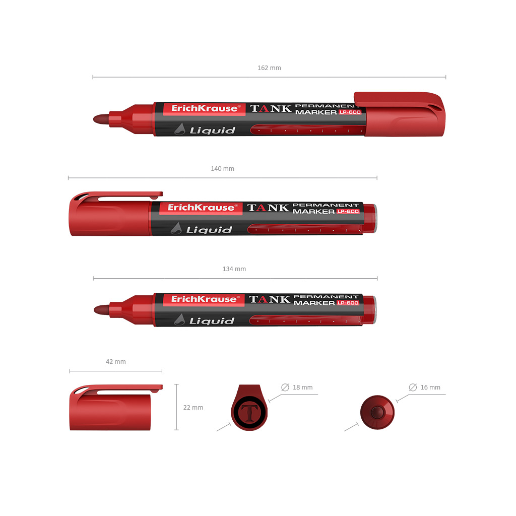 Marcador permanente con tinta líquida ErichKrause® Liquid LP-600, tinta color: rojo (caja 10 uds.) |