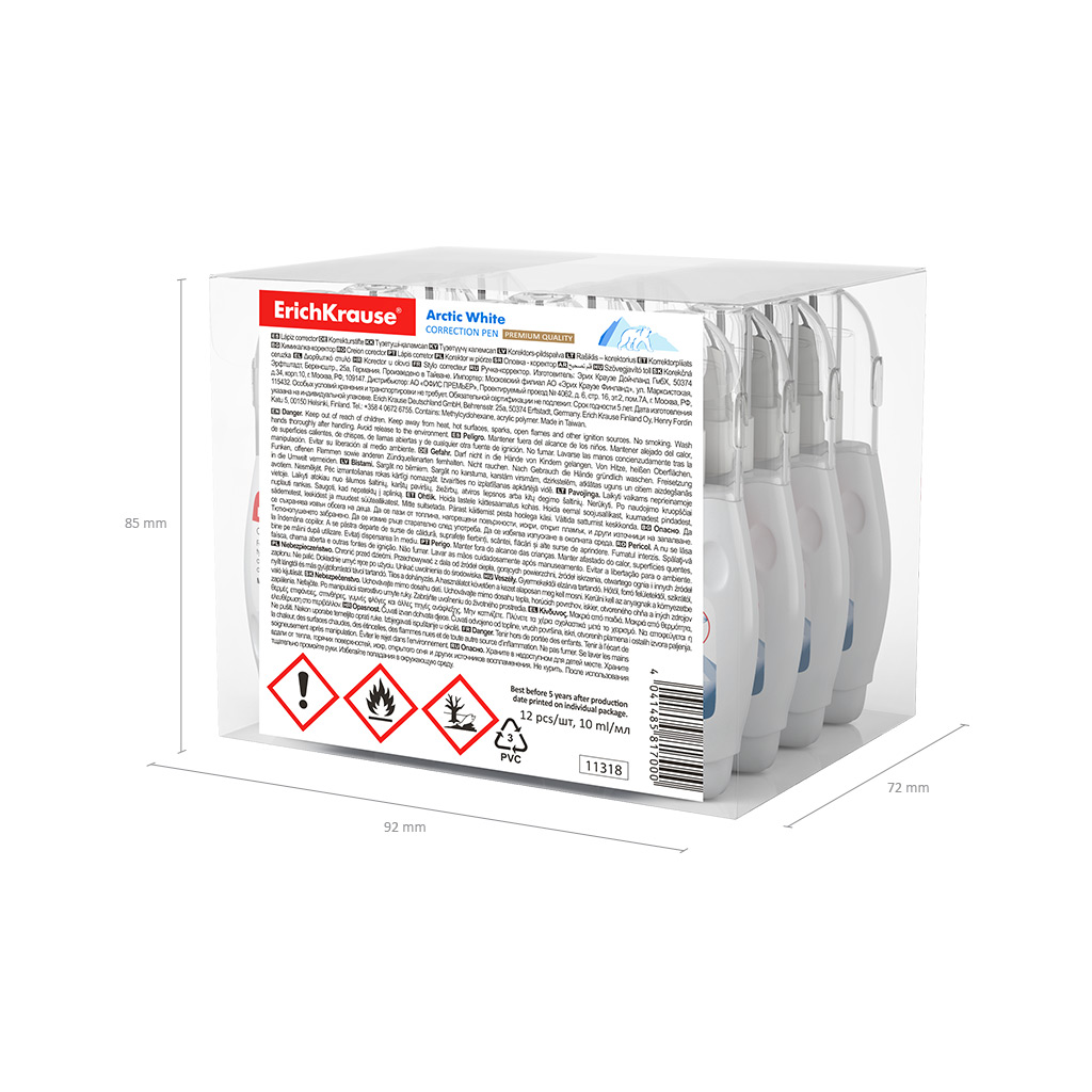 | Nombre Completo de la mercancía: | Lápiz corrector ErichKrause Arctic blanco, 10 ml (caja de plástico 12 uds.) |