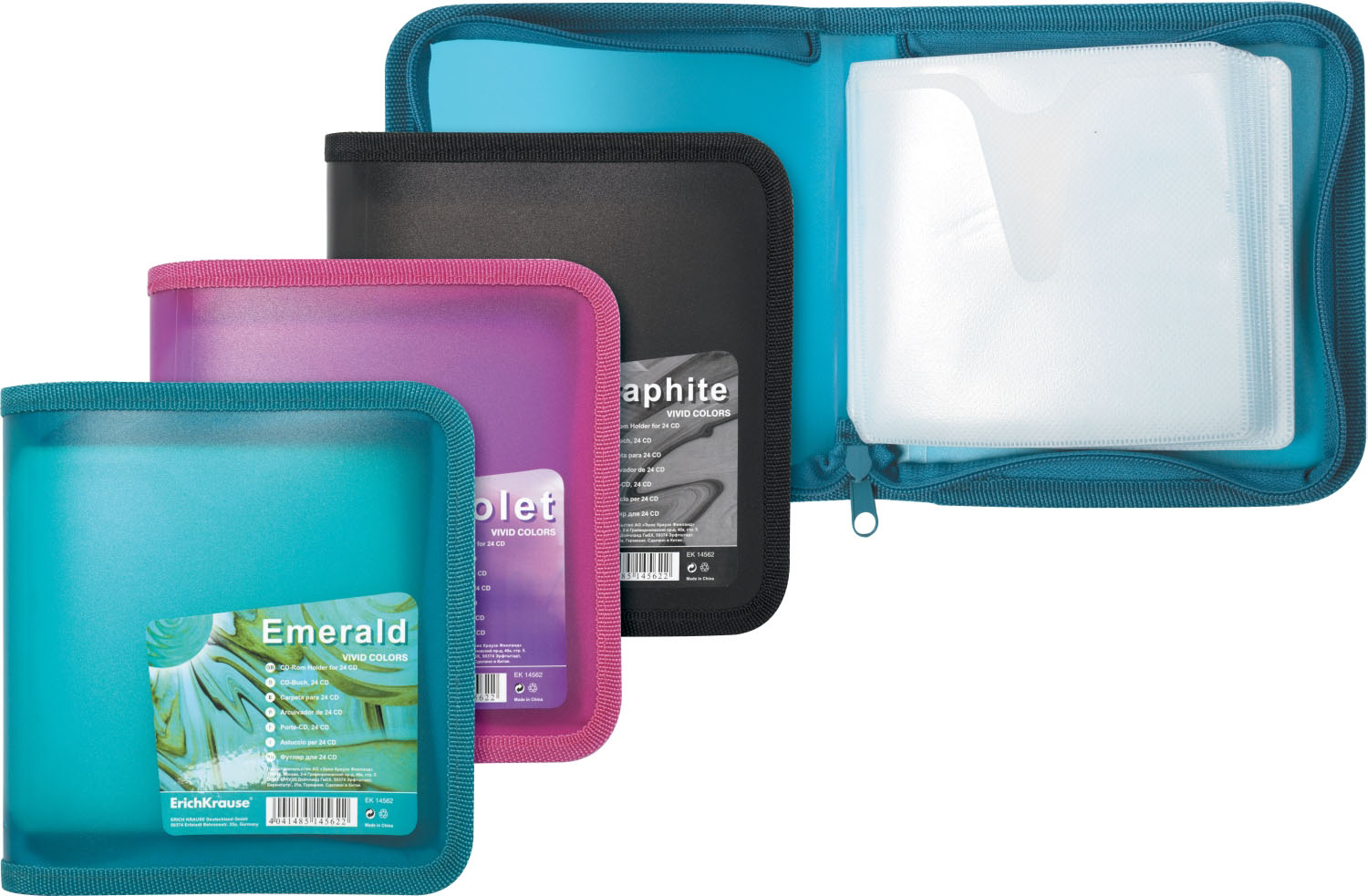 Porta CDs ribeteado en tela, 24 fundas, VIVID COLORS |