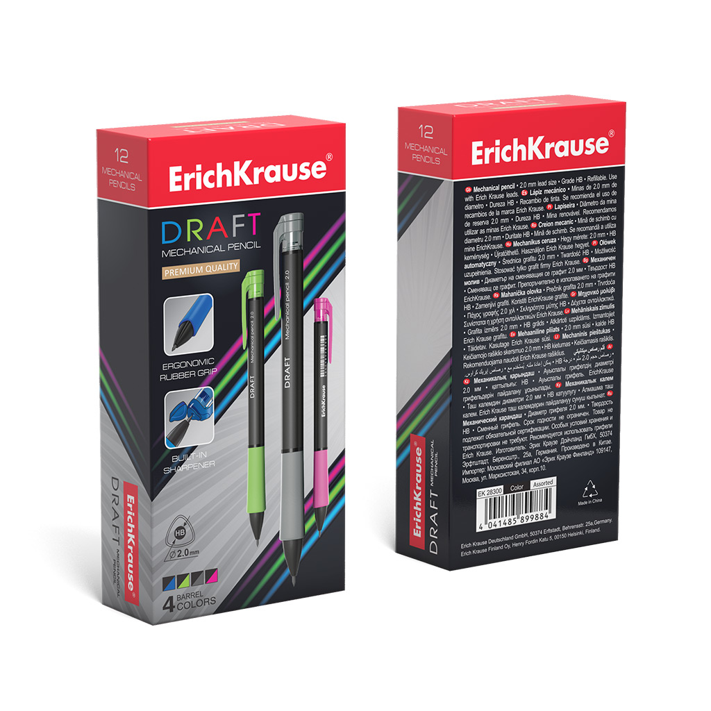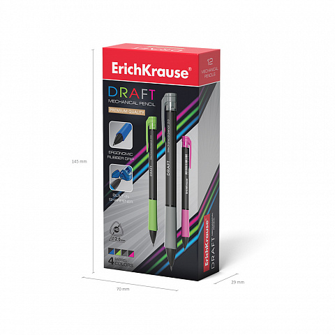 Карандаш механический ErichKrause Draft 2.0 мм, НВ (в коробке по 12шт.)