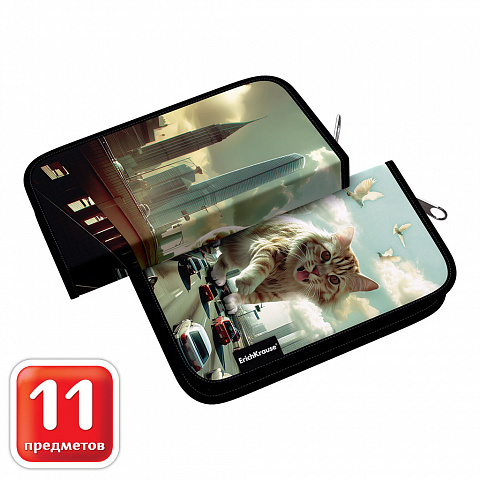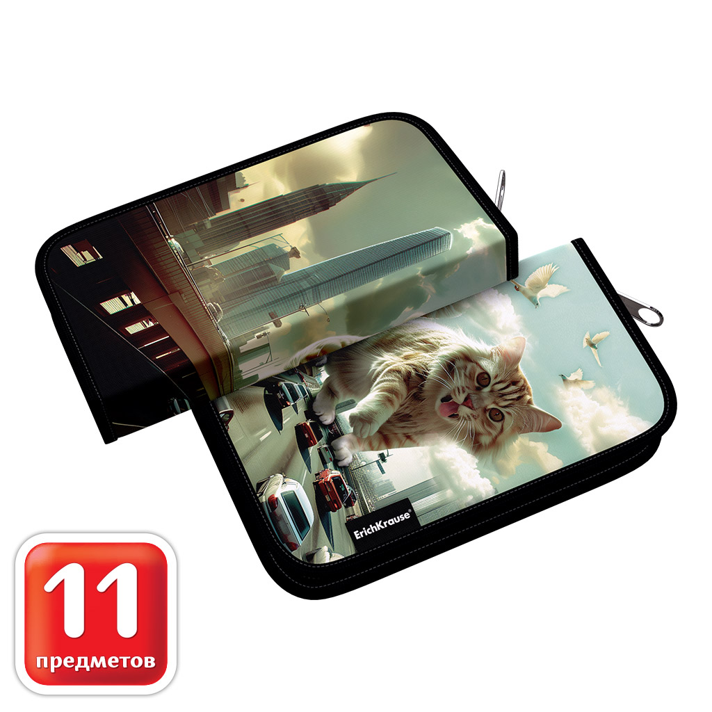 Пенал-книжка с наполнением ErichKrause 110x205x25мм Коты большого города |
